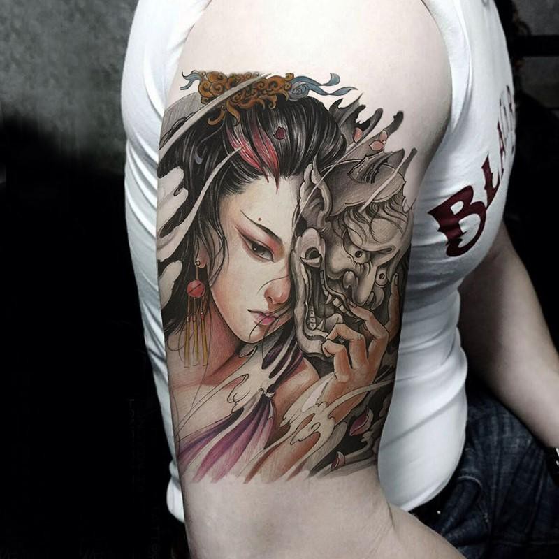 Tattoo Stickers Skull Beauty Geisha Tattoo Stickers 1 Year Shopee Malaysia
